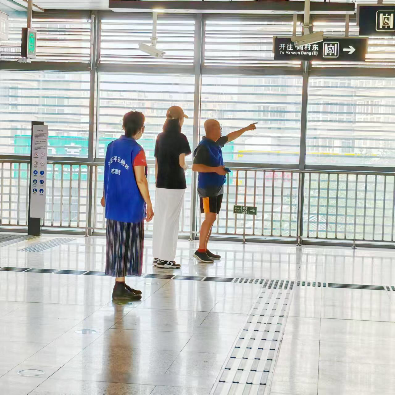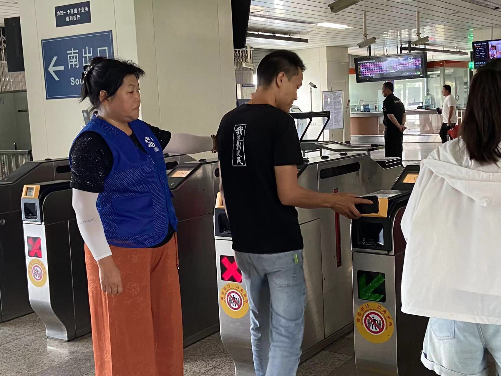 志愿服务活动中,志愿者们积极主动、耐心十足,有条不紊地分布在地铁站的各个角落。引导乘客正确使用自动售票机购票、充值,向乘客解答有关路线与换乘问题,为乘客提供了必要的帮助。负责入闸口区域的志愿者关注乘客在闸机处的通行情况,帮助乘客解决乘车码异常问题以及协助行李安检,以避免进闸通行能力与实际客流通过能力不匹配,造成客流拥挤。扶梯区域的志愿者负责引导乘客前行至站台中部候车,避免因为扶梯口客流拥堵而产生事故。