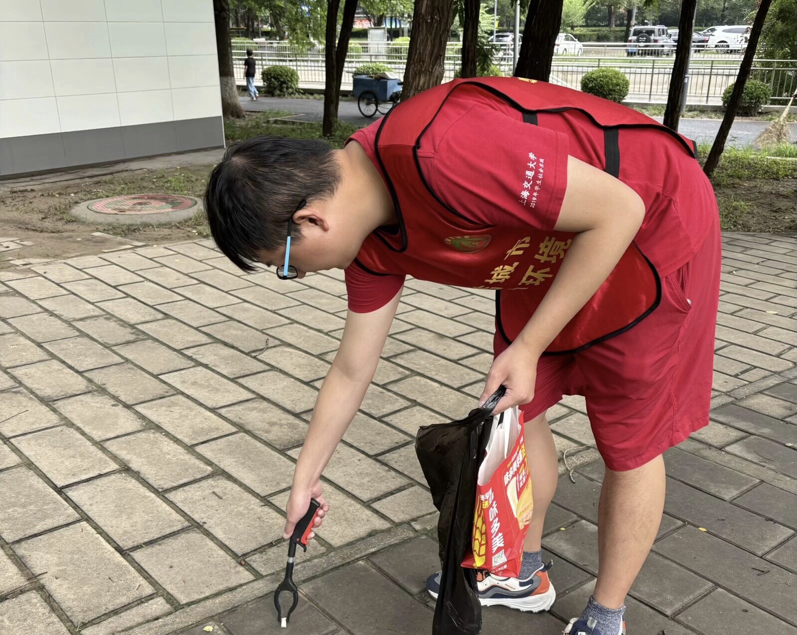 活动开始,志愿者们手拎塑料袋与垃圾夹,充分发扬“不怕苦、不怕脏、不怕累”的志愿服务精神,仔细查看,拾取道路及两侧、绿化带中、不易被发现的地方,都有志愿者的身影。虽然天气预报暴雨蓝色预警,但大家热情高涨、干劲十足。
