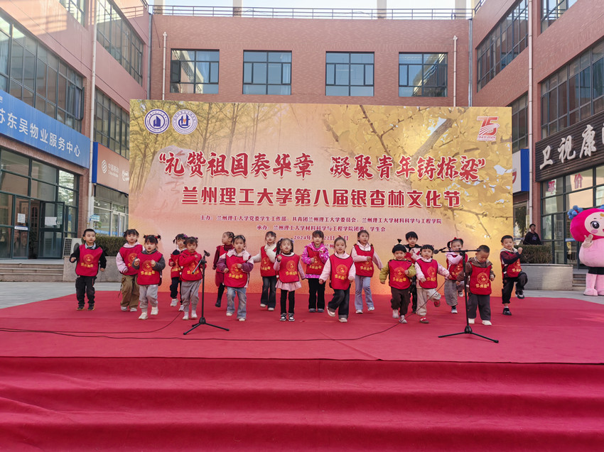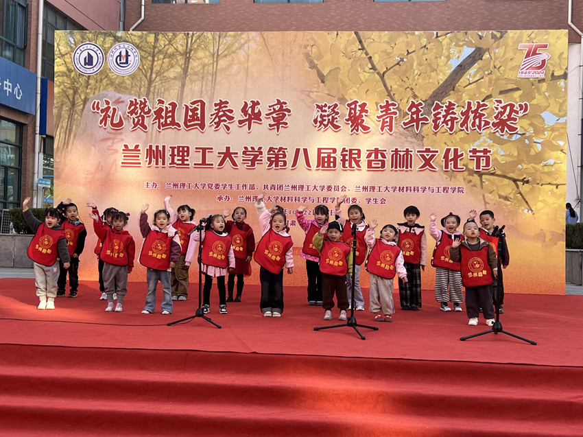 随后参加了“礼赞祖国奏华章 凝聚青年铸栋梁”兰州理工大学第八届银杏林文化节活动开幕式,与理工大社区艺术团、理工大学生志愿者哥哥姐姐同场献艺,用实际行动积极响应了团中央“社区青春行动”的倡议。现场,孩子们为师生表演了朗诵节目,孩子们自信大方、毫不怯场的精神状态;洪亮清晰、流利标准的声音,赢得了大家阵阵不息的掌声。