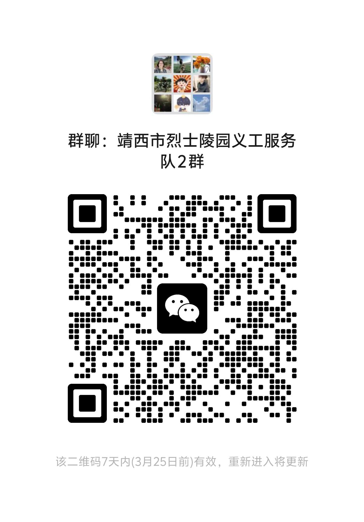 凡满足招募条件的志愿者,请扫描以下二维码,加入靖西市烈士陵园义工服务队 (择一群加入即可),入群后请将本人群昵称改为“真实姓名+联系方式”格式(例如:“黄某-13XXXXXXXXX”)。