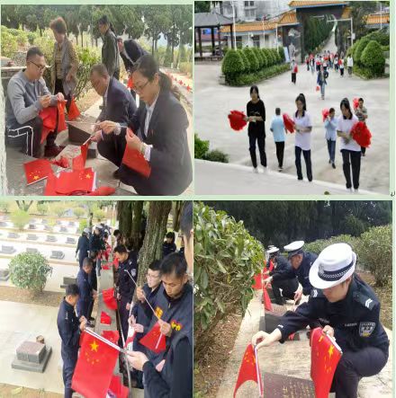 图为:靖西市各单位与义工联合为烈士更换新国旗