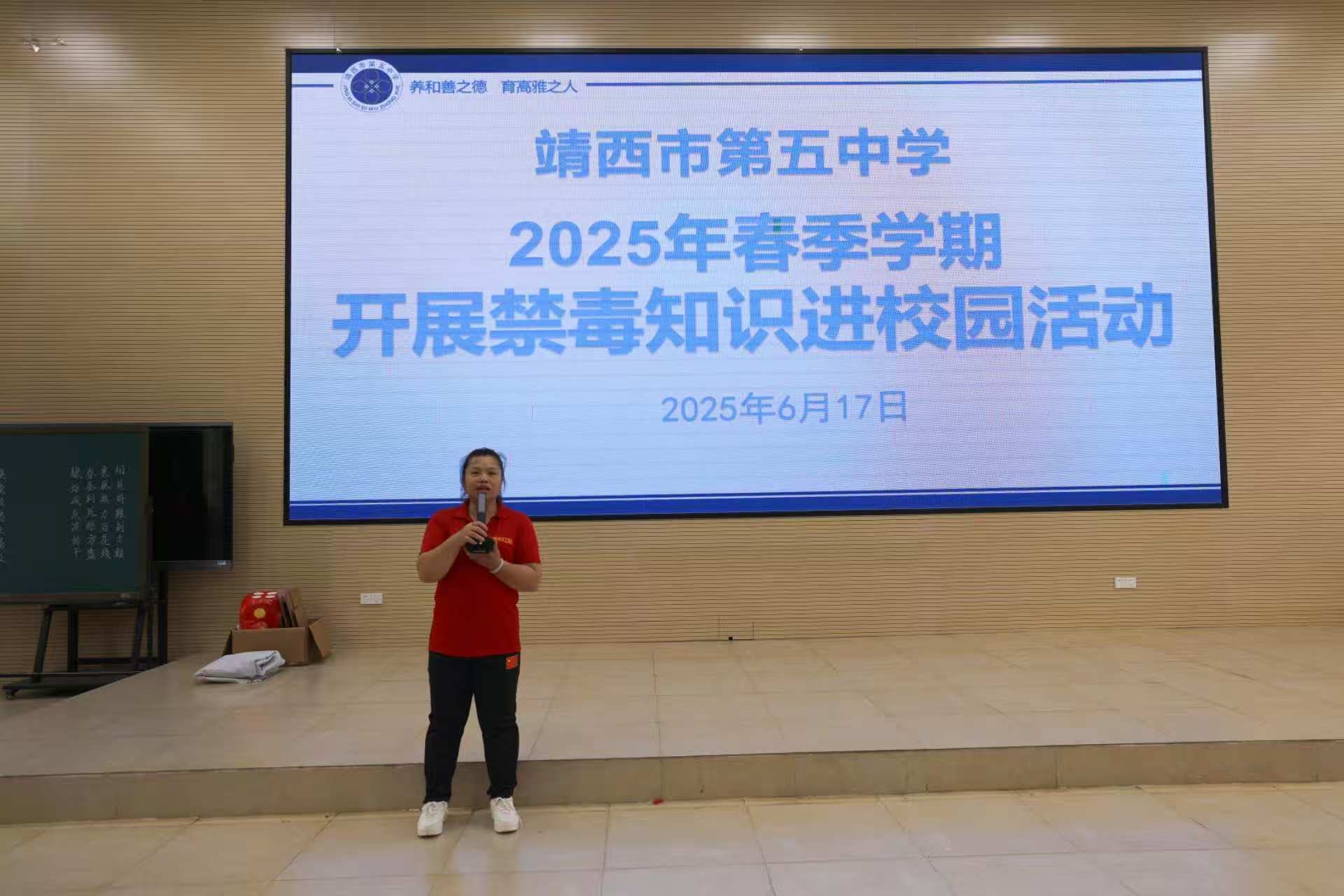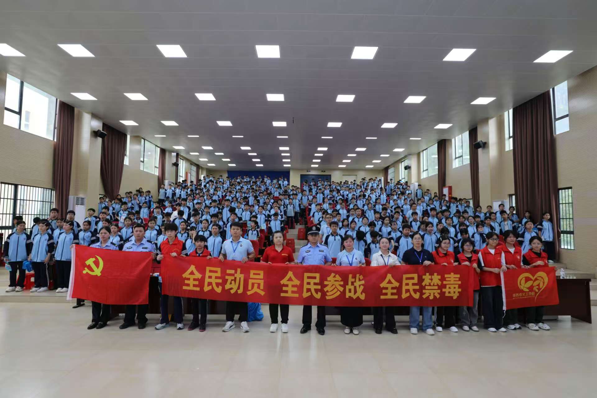 为筑牢青少年禁毒防线,增强识毒拒毒防毒能力,6月17日,一场别开生面的“禁毒趣味课堂”在靖西市第五中学火热开展。本次活动由靖西市禁毒办牵头,联合靖西市公安局新圩派出所、靖西市义工协会,创新采用“知识科普+趣味互动”模式,带领600余名学生开启沉浸式禁毒学习之旅。