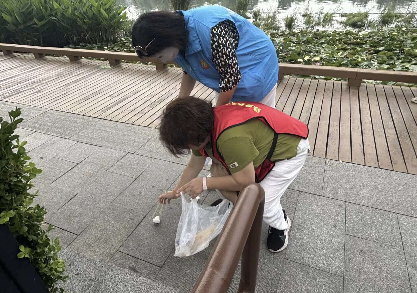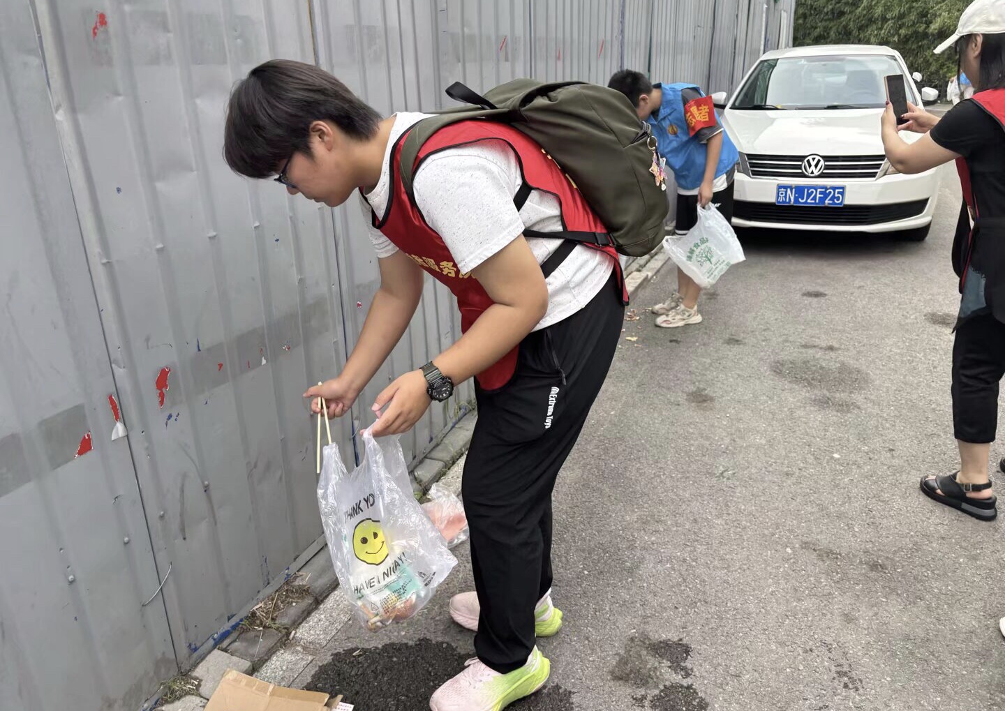 活动现场志愿者们身着统一服装,精神饱满地投入到户外清洁志愿服务中。大家手拎垃圾袋、夹子,充分发扬“不怕苦、不怕脏、不怕累”的志愿服务活动精神,分工合作专心致志只要见到垃圾,大家一个也不放过,不留卫生死角并将各种不同的垃圾进行分类投放。 志愿者们不惧炎热,辛勤劳动使活动区域的环境焕然一新。