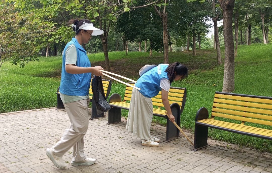 志愿者们带着夹子、手套和分类垃圾袋分散行动:有人蹲在草坪上,用夹子夹起藏在草丛里的碎纸屑、果壳;有人沿着河边步道,将游客丢弃的塑料瓶、饮料罐逐一拾起;遇到混在一起的垃圾,大家会蹲在垃圾桶旁仔细分拣。发现有市民随手扔垃圾,志愿者会轻声提醒“垃圾请分类投放”,并指引领近的分类垃圾桶位置。