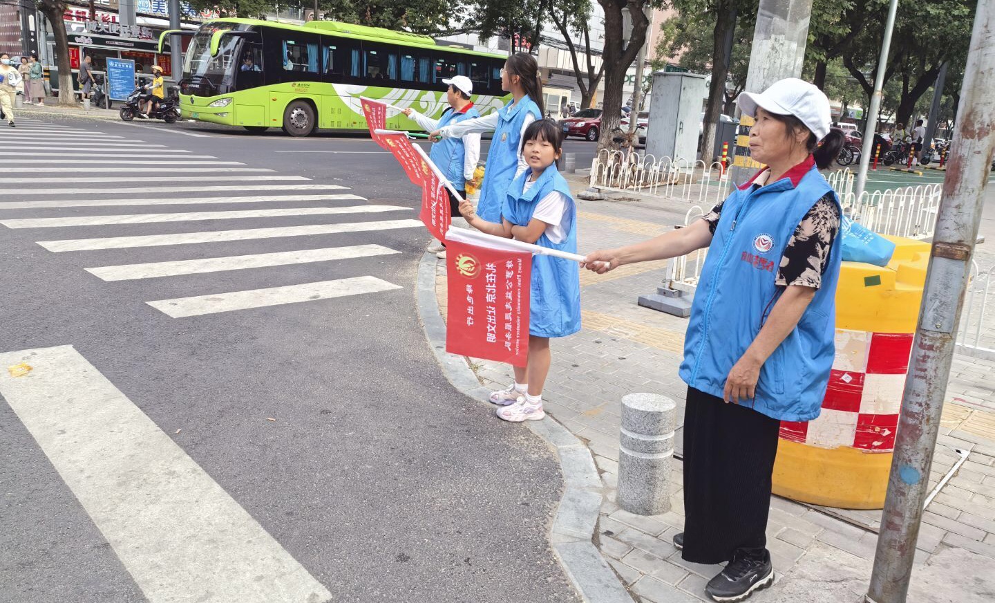 活动现场,志愿者们身着统一服装,手持引导牌,站在斑马线两侧。他们积极引导过往车辆减速慢行,停车礼让行人,同时耐心提醒行人遵守交通规则,注意观察信号灯,安全通过马路。在志愿者们的努力下,路口的交通秩序井然有序,车辆与行人相互礼让,形成了一道文明的风景线。