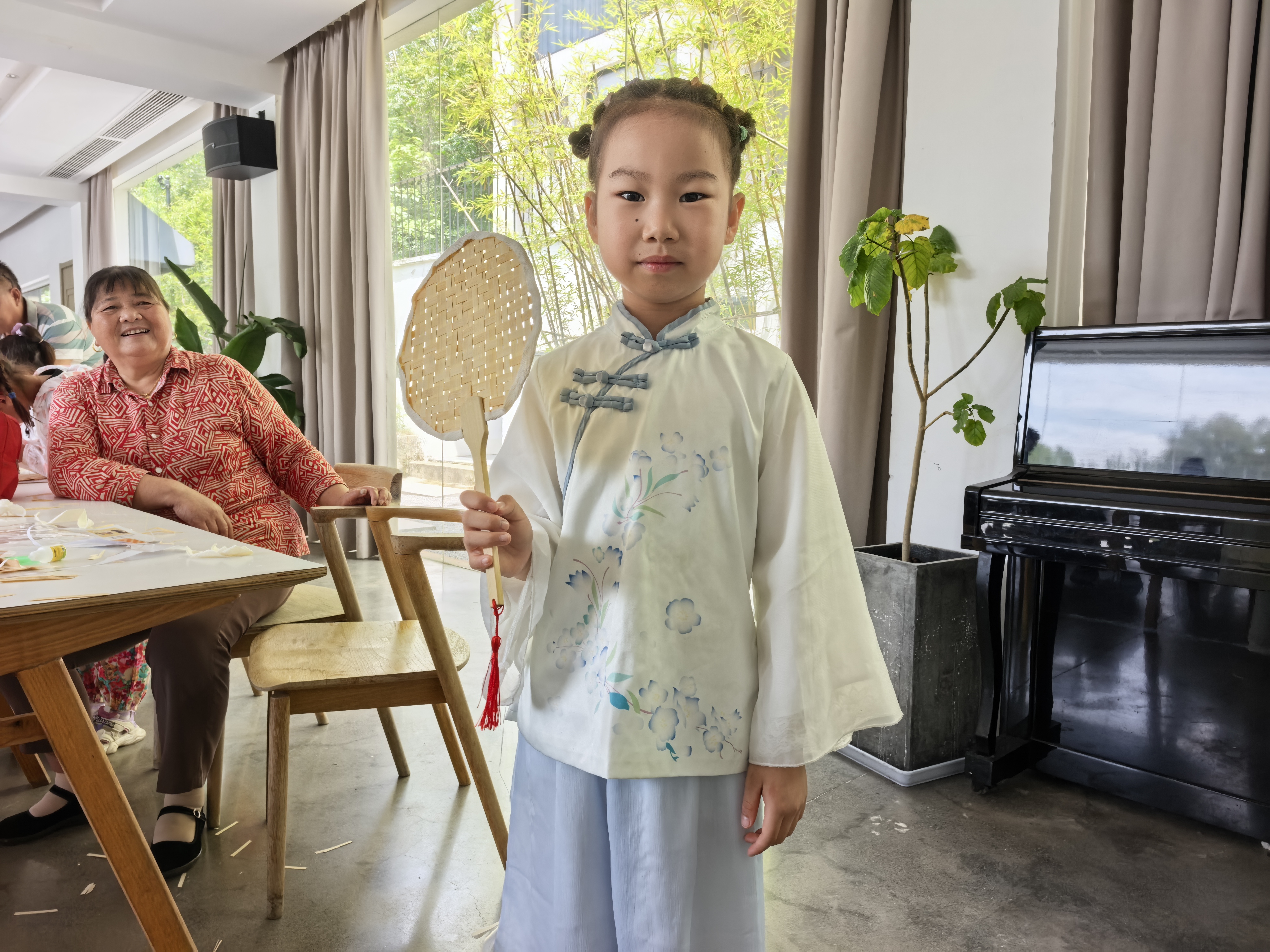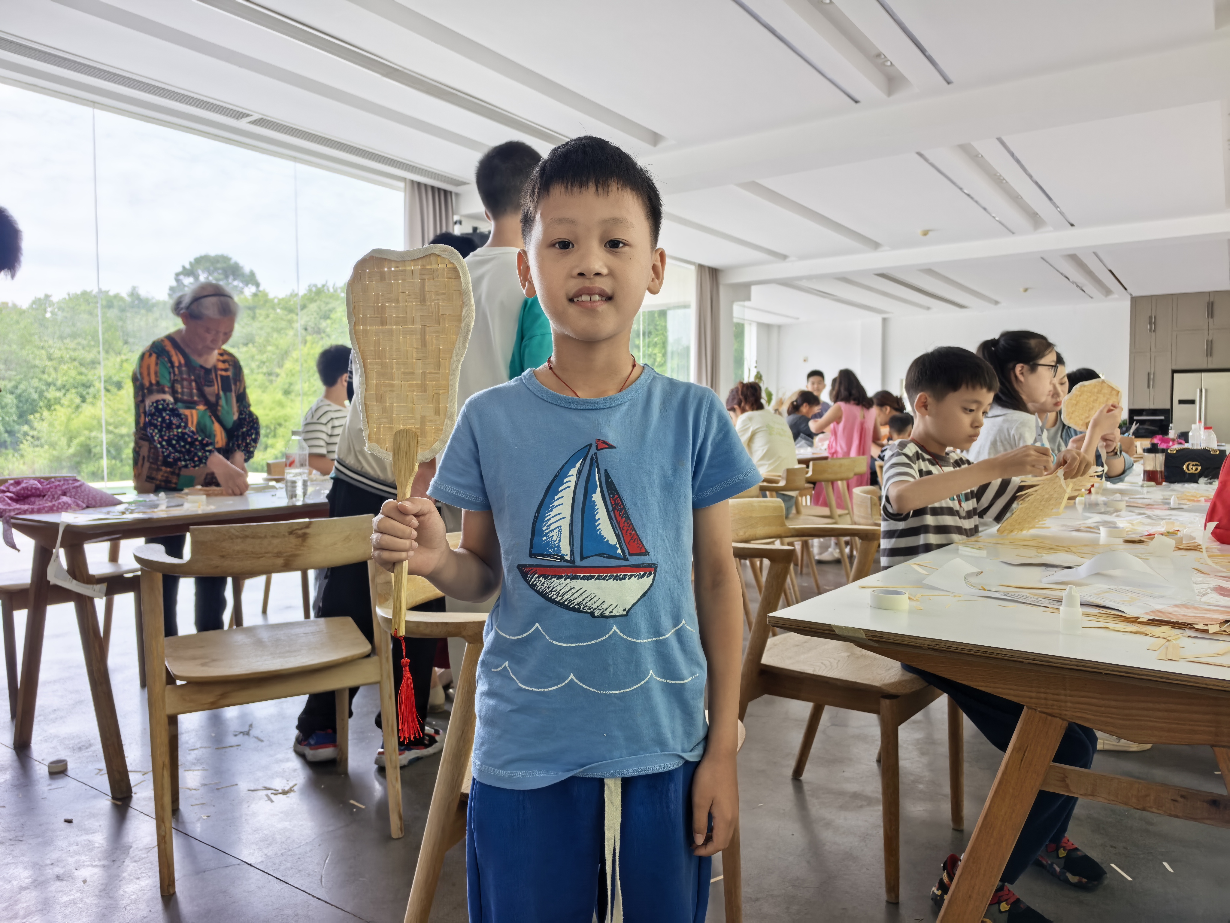 在竹编扇制作环节,专业老师耐心教授了非遗技艺的“压一挑一”技法。小朋友们与家长亲子协作,手忙脚乱却乐在其中,一根根竹篾在他们的巧手下渐渐编织成一把把精美的竹编扇。这个过程不仅让孩子们体验到了传统技艺的魅力,更培养了他们对非遗文化的浓厚兴趣与传承意识。