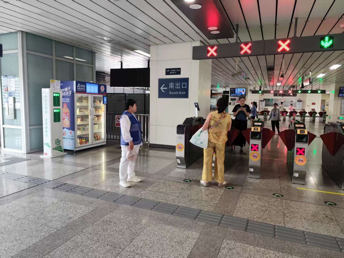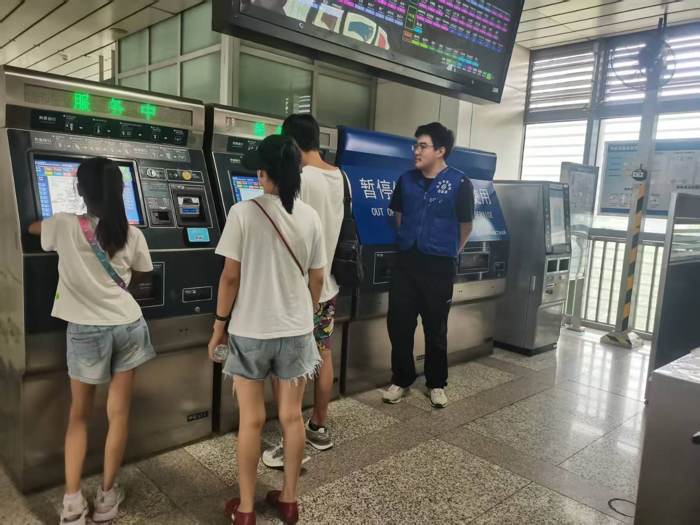 活动期间,志愿者们身着统一服装,分散在地铁站的各个关键位置。在自动售票机旁,志愿者们耐心地为不熟悉购票流程的乘客提供帮助,指导他们操作机器,解答关于线路、票价等问题。