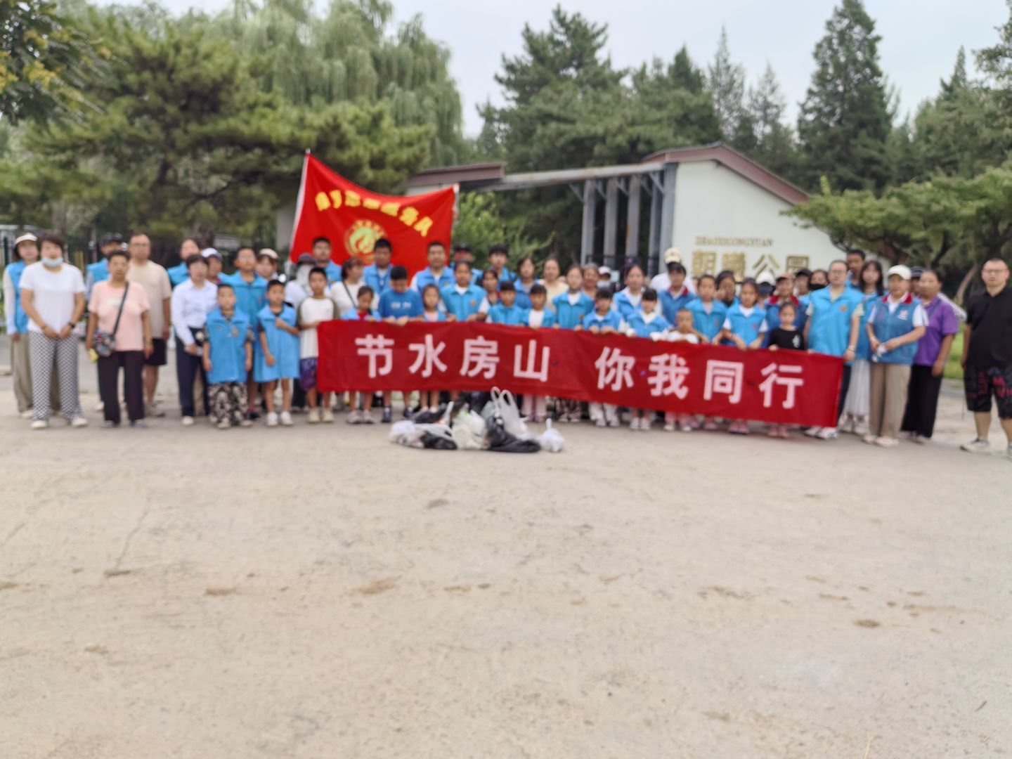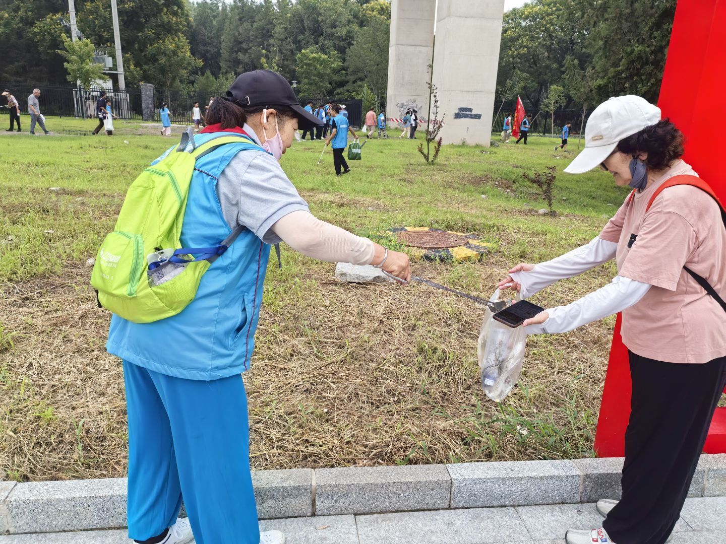 八点半,绿萝志愿服务的队员们身着蓝色马甲在房山朝曦公园集合,她们的口号是:“节水护水,青春无悔!”他们挥动竹夹,沿公园小路捡拾游客遗留下来已晒得发软的塑料瓶、嵌进泥沙的烟头、缠在草坪上的口罩,全被闪电般收入可降解袋。孩子们涨红小脸接力传递,汗水在下巴汇成晶亮的“雨”。