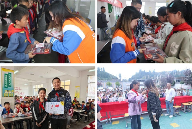 云南捐赠仪式当天,文启优思代表老师和镇雄县学校全体师生共同参与活动。在热烈的掌声中,崭新的课桌椅被搬进教室,孩子们捧着印有“爱心文文”图案的文具书包,脸上洋溢着灿烂的笑容。