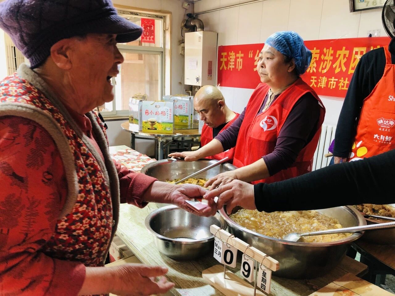 暮春的晚风掠过独流减河,天津市西青区大寺镇青凝侯村的街巷里,渐渐飘起饭菜的香气。每天下午四点半,时针刚指向约定的时刻,爱心餐馆振继小吃店里便盛放着一份份热气腾腾的家常菜,身体状况较好的老人,可自行携带餐具到店打饭、现场就餐;腿脚不便的特殊老年群体,可以让家人来代领吃上热乎、可口、营养的饭菜。