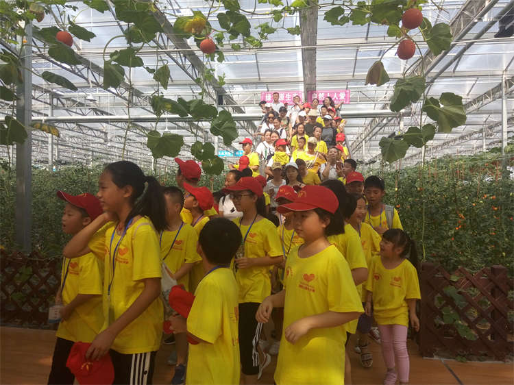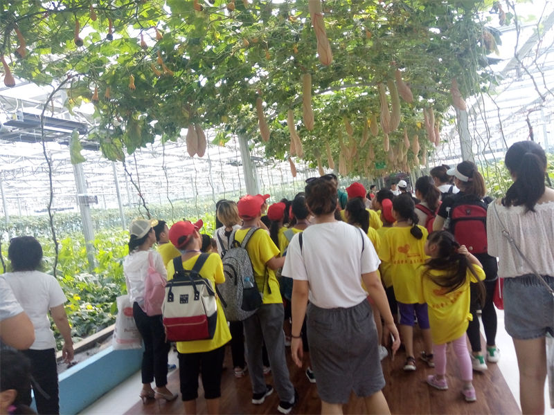瞧!讲解员正在给我们的公益小天使讲解着,我们的小天使和家长们已被眼前珍希奇特、五颜六色的蔬菜瓜果吸引着。