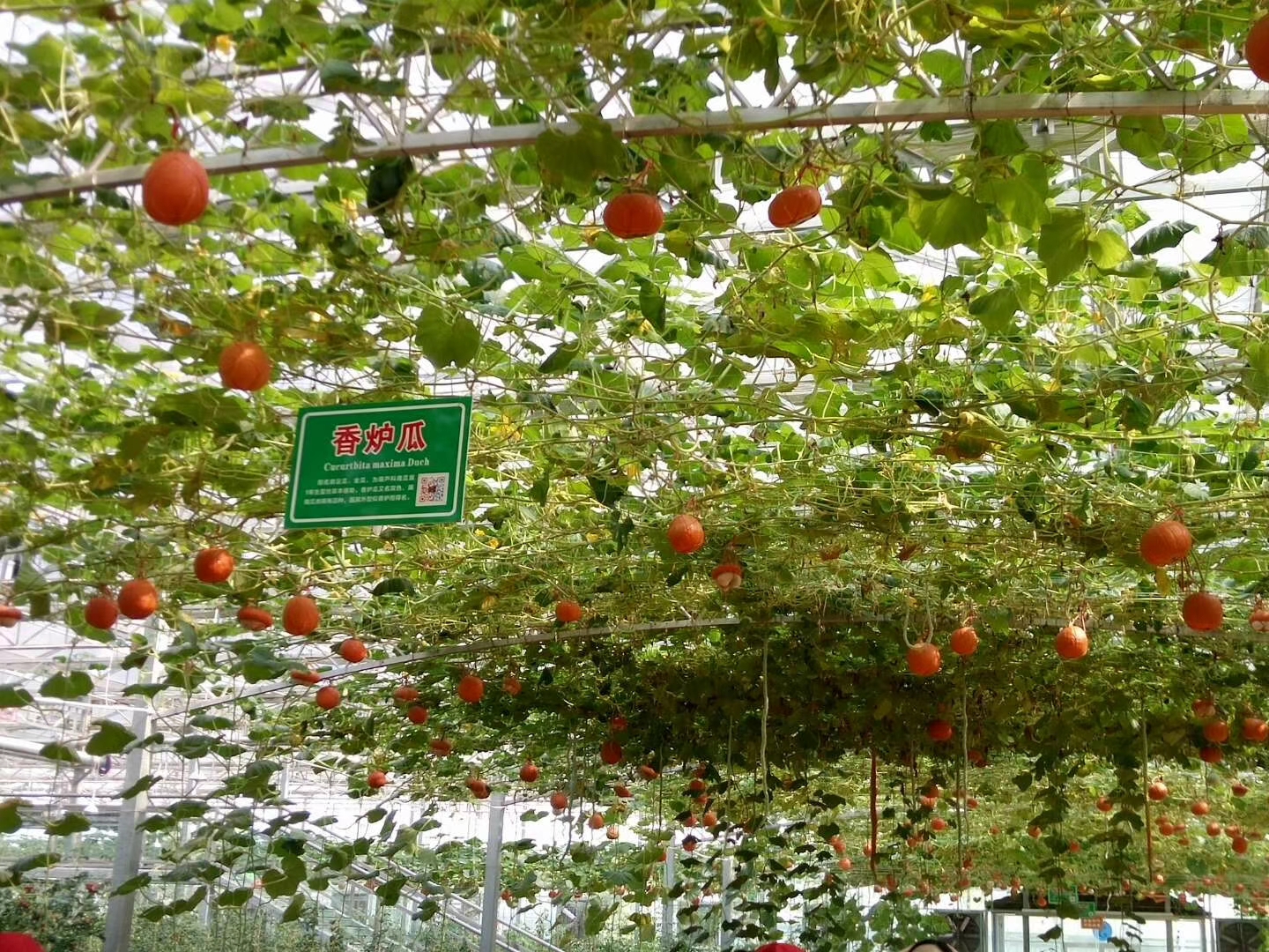 据讲解员介绍,整个智能观光大棚内共种植了巨型南瓜、迷你黄贝贝、飞蝶葫芦、空中西瓜、蛇瓜、鼠瓜等360多种珍希奇特的蔬菜瓜果。