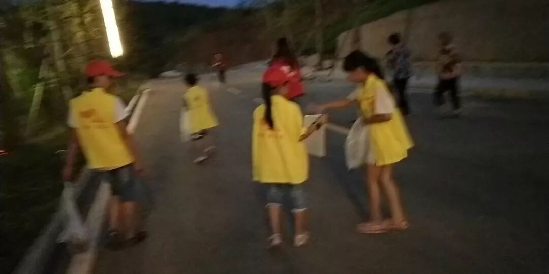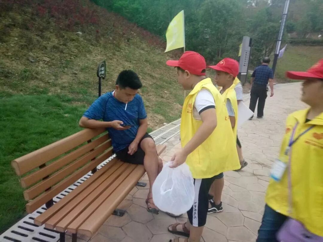 我们小小的文明督导员在耐心地劝导游园市民的不文明现象。