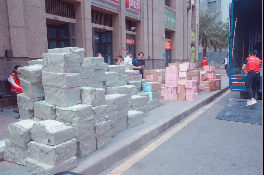 他们一箱箱放到拖车上,再一次次从15楼拉到一楼,途径空中花园、阶梯,汗水浸湿他们的衣服,汗珠一滴滴滑下,他们来不急休息,经过三个小时,两列装满图书、玩具、儿童牙刷、牙膏、篮球等的中型货车驶离,载着30万龙岗义工和4595名爱心人士的爱心出发,开始长达10天的行程,途径万里路,将爱、知识传递给新疆喀什的孩子们。