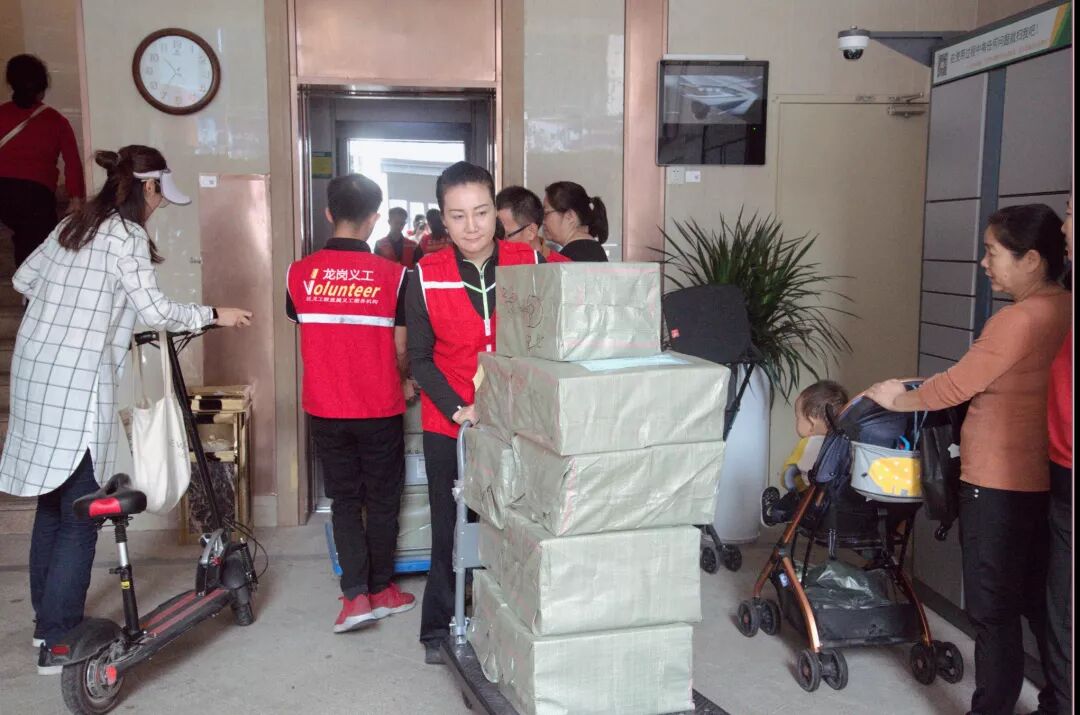 2018年11月15日上午,10名龙岗义工在万科天誉将“每一个梦想都该被灌溉”88大型教育扶贫公益募捐活动募捐到的图书、生活用品、学习用品、体育用品进行分类、整理、打包、装车。