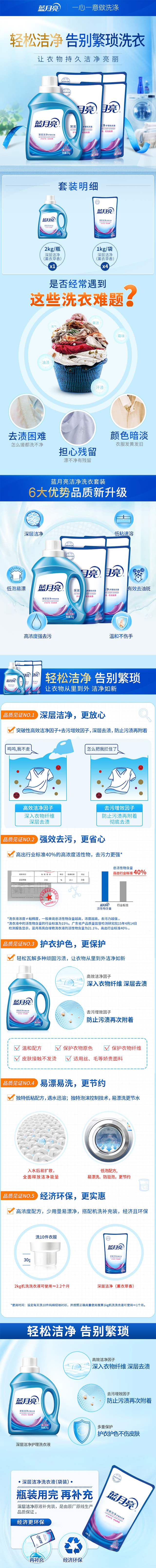 【爱心价】蓝月亮深层洁净护理洗衣液2kg+1kg*4袋共12斤